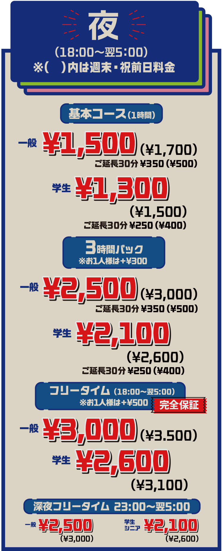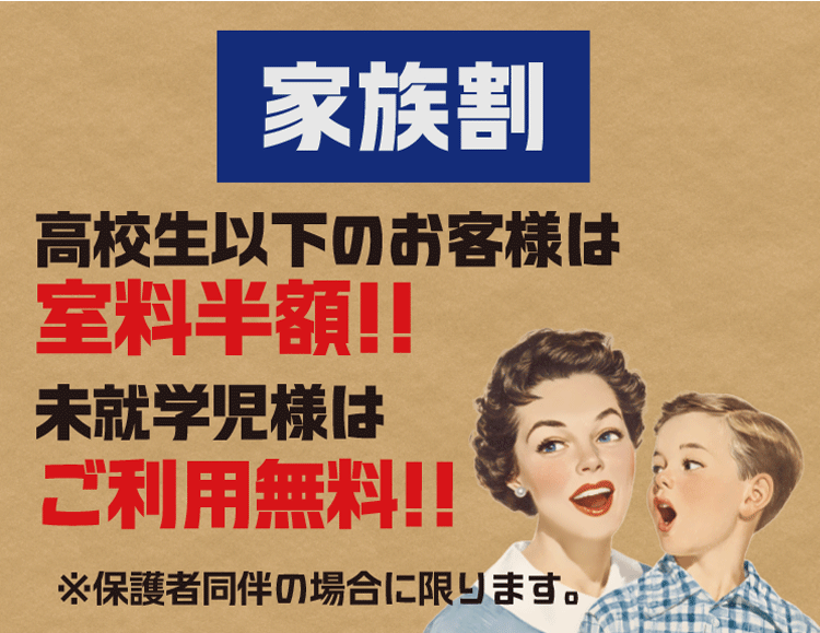 ※学割・家族割をご利用の際は学生証をご提示ください(小学生不要)。